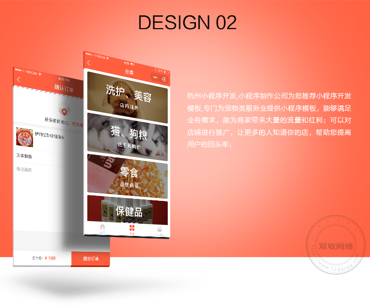 杭州小程序開(kāi)發(fā),小程序制作公司雙收網(wǎng)絡(luò)為您推薦小程序開(kāi)發(fā)模板,專門為寵物類服務(wù)業(yè)提供小程序模板,能夠滿足業(yè)務(wù)需求,能為商家?guī)?lái)大量的流量和紅利;可以對(duì)店鋪進(jìn)行推廣,讓更多的人知道你的店,幫助您提高用戶的回頭率;